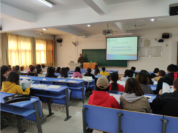 随后黄凯老师来到考研同学当中展开了招生宣讲, 详细讲解了2019年研究生招生政策,重点介绍了我校金沙集团1862cc成色各学科专业的相关教学背景及招生录取情况、就业情况、专业课程和研究生的奖助学金体系,鼓励广大京外同学报考北京农学院研究生,在交流环节,同学们咨询的主要问题集中在招生学科与专业领域情况、考试难度、往年分数线、调剂情况等方面。黄凯老师分别给予了详细的解答,使该校学生对金沙集团1862cc成色的各方面情况都有了一个详细的了解。