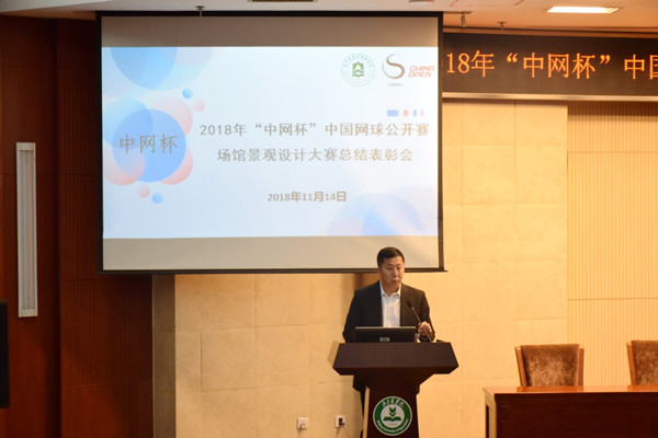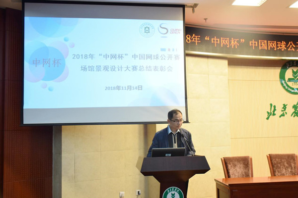 2018年11月14日12:30,2018年“中网杯”中国网球公开赛场馆景观设计大赛总结表彰会在北京农学院图书馆报告厅顺利举行。北京中国网球公开赛体育推广有限公司副总裁刘明秋,业务运行部总经理王颖彦,业务运行经理姚帆,金沙集团1862cc成色党总支副书记、院长张克中,党总支副书记、副院长李国政,风景园林系主任张维妮,风景园林系副主任冯丽,辅导员武丽以及风景园林专业学生参会,副院长胡增辉主持总结表彰会。