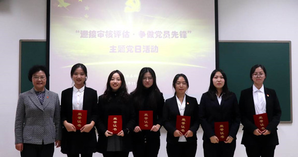 随后,党支部开展了“迎接审核评估·党员争做先锋”主题党日活动演讲比赛。经过评委评选,最终崔诗雨荣获一等奖,倪雪雷、黄筱卉荣获二等奖,段利婷、杨彤梦、刘雪云荣获三等奖。王校长分别为六名同学颁奖。