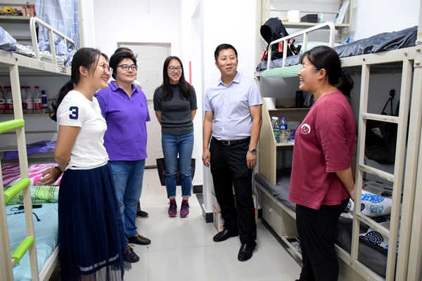 下午五点,学院领导、新生班主任和辅导员对新生宿舍进行走访,了解新生的住宿情况,强调同学之间应相互帮助、融洽相处,注重宿舍环境,争当优秀宿舍。
