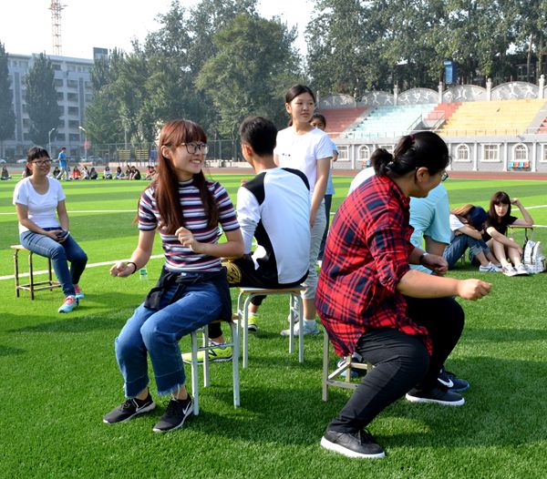 本次活动主要分为坐地起身、抢板凳、抢报数3个游戏;坐地起身游戏充分展现了团队协作意识的重要性。游戏的主要规则为6个人手挽手、背对背地坐在地上,之后要一同站起来。这游戏看上去简单,但实际操作的时候会出现许多问题。大部分同学第一次尝试的时候都没有成功,后来同学们总结问题、步调一致之后,游戏对于他们来说就轻而易举了。不一会儿,新生们都掌握了游戏诀窍,游戏顺利完成。通过“坐地起身”游戏,新生们充分了解到团队合作是游戏的核心,游戏做完之后,同学们的热情更高胀了。