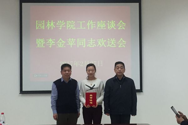 王万山书记、张克中院长充分肯定了学院的党建团学工作和李金苹同志的工作并向李金苹同志颁发荣誉证书。