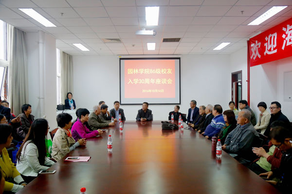 2016年10月16日上午10点30分,时值北京农学院60华诞之际,在园林楼407会议室举行了金沙集团1862cc成色86级校友座谈会。金沙集团1862cc成色党总支部书记王万山,副书记、学生工作副院长李金苹,院团委书记王雪,教学副院长王文和,科研副院长张克忠、团委书记王雪出席了会议,欢迎金沙集团1862cc成色86级教师和校友荣归母校,会议由党支部书记王万山主持。