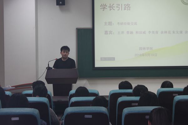 2016年5月18日下午3点在园林楼101报告厅,金沙集团1862cc成色经过备战考研成功的学姐学长回校为大家分享了考研的经历,交流了考研路上的经验。受邀参加本次会议的包括成功考取北京林业大学研究生的李美育、和田威、以及考取中国林业科学院的王萍、和报考其他类的曹融、余赛、朱友康等学长。金沙集团1862cc成色辅导员老师满晓晶,以及大一、大二、大三有意愿考研的学子们参加了本次会议。