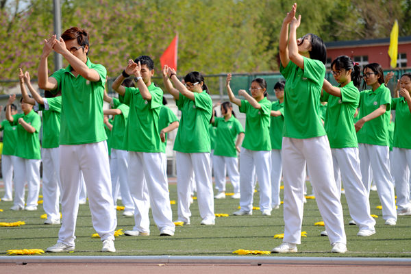 最后由我校600多名莘莘学子组成的校舞队,伴随着北农的校歌翩翩起舞。舞出了北农的活力,王慧敏校长宣布,第三十六届校运动会正式开幕。又是一年活力季,我们在此祝福每一个学子都能够沐浴春风,乘梦飞翔。