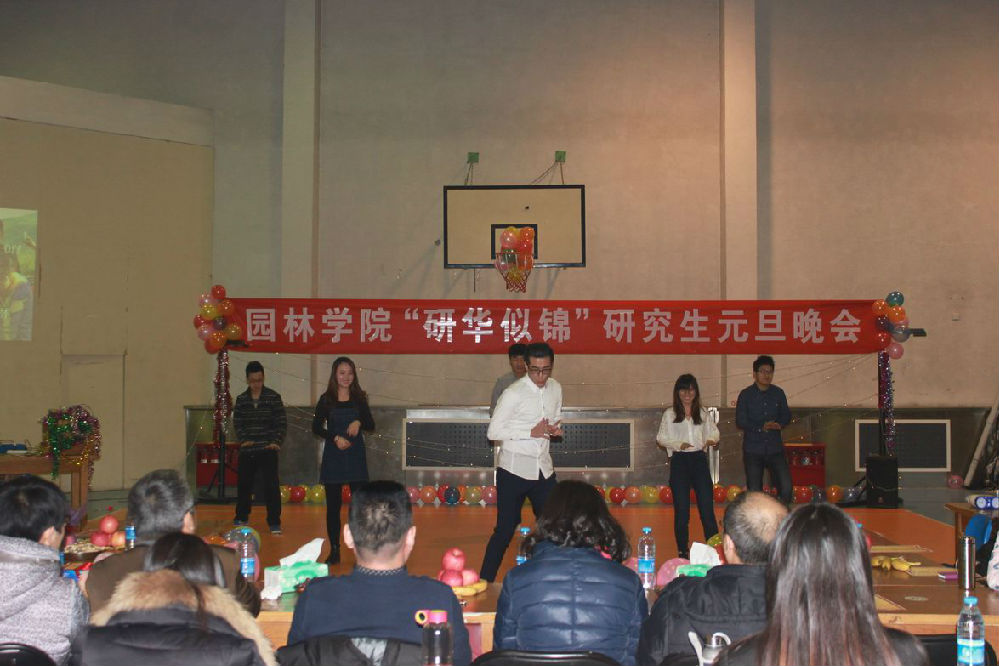 晚会在15级风景园林学班同学的劲爆舞步中拉开序幕。同学们自编自导的开场舞让大家为金沙集团1862cc成色研究生的多才多艺感到惊叹。随后同学们带来了精彩的歌舞表演与诗朗诵,并以各种形式的游戏活动串联,在游戏植物猜猜猜、占领阵地中,老师和现场同学齐心协力共同完成,会场充满了欢乐的气氛。此外,王文和、张克中与李金苹、戴智勇老师也融入到活动当中,和同学们快乐的玩游戏,还为同学们倾情献唱,使得晚会气氛其乐融融。