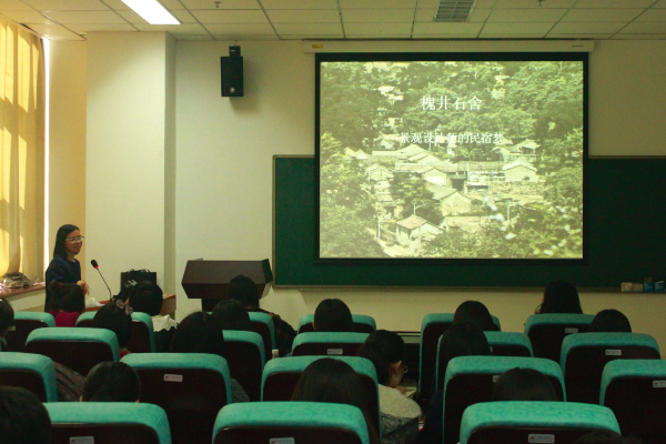 会议之初,她向我们讲述了自己职场的沉浮、艰难转型的经历、以及最后找准了自己的方向。2015年的决定是一个重大的转折点,她深思熟虑后选择了碣石村这个古村落作为实现自己民宿梦的起点,成立了北京槐井石舍文化旅游有限公司和北京槐井石舍酒店管理有限公司。在初定计划后,迅速地进行准备工作,先是实地考察,再制定计划确定分工,最后开始施工。这些工作说起来容易,做起来却是困难重重,比如如何才能真正的在不损害古村落原本的风貌基础上进行设计,每个参与设计的设计师都绞尽脑汁力图做到最好。会上,李克俊学姐在一个景观设计师的角度为大家分析了座位学生的我们应该学习什么,成立一个集民宿选址,设计、建造、众筹、营销、运营于一身的民宿酒店运营管理团队我们该注意什么。