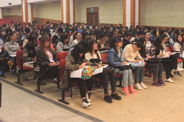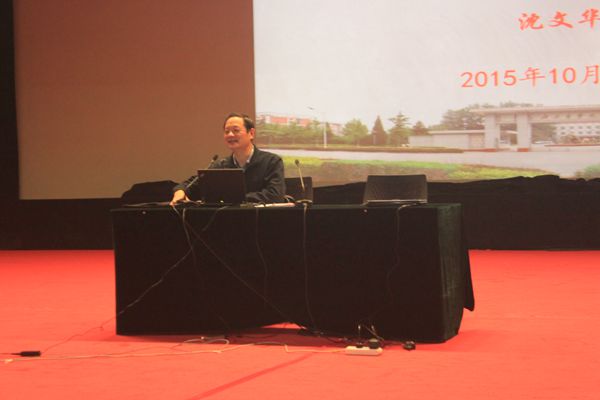 接着,沈文华教授为同学们带来了《爱国、敬业—争做新时期大学生的学习模范》的精彩演讲。沈教授首先将社会主义核心价值观分为三个层面,并通过最后一个层面引出了爱国与敬业这两大主讲核心主题。他通过古往今来的人物,经典传承的典故等多方面为同学们讲解何谓爱国。“国,口中之玉也,国人之珍宝,不容他人侵食”,语言绝妙,字字珠玑更是引发了同学们党课学习的浓厚兴趣。其后快递哥窦立国,浙江工商局长郑宇民两个视频的播放又是掀起了同学们思考学习的新高潮,引出了敬业观点:小事做起即时敬业。沈教授提倡大家逐字逐句地学习党章,并提出学习不能只追求记忆,要深层次学习,以收获为目的。最后,他以《钢铁是怎样炼成的》中一段名言圆满地结束了他的讲说。
