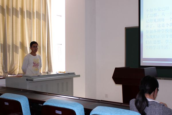 12:10总结会正式开始。各位班助分别对自己这一个月以来的工作进行总结,主要从新生接待工作、加强班级学风建设、组建班委、组织集体活动和新同学们交流谈心这几方面来谈自己的感受与感想。