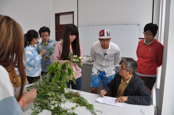 为保证教学效果,最后等待大家的是口试。同学们不仅要认识自己压制的上百种植物,还得辨别老师们新近采集回来植物的形态特征和所属科别。瞧,大家都在教室外面认真准备口试。考试中的同学你们要加油呦!
