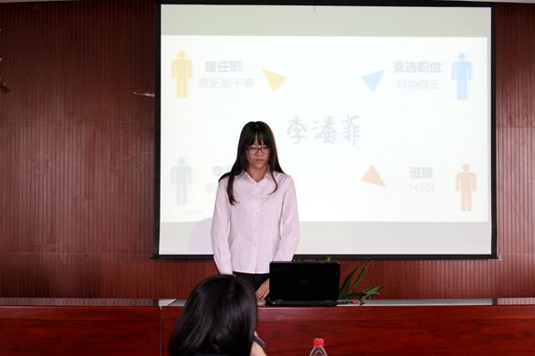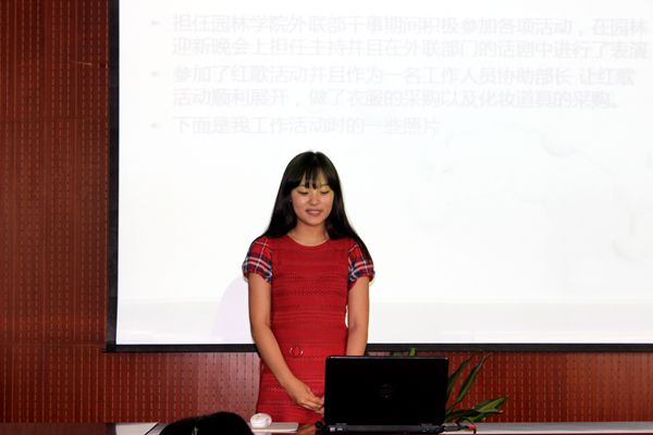 首先进行主席团竞选答辩。竞选主席级的各部长依次上台发表竞选演说,展示时间为5分钟。各部长主要就自己这两年在学生会开展的工作和获得的成就以及工作构想等几个方面进行答辩。此外还有评审团提问环节,王雪老师和评审团的提问主要围绕今后学生工作的开展及开展过程中遇到的问题等展开。随后进行学生会各部门的部长竞选,每人展示时长为3分钟。每一位参选人都为答辩做了充分的准备,上台落落大方,言辞之中向大家表述着自己想尽责园林学生会、愿为建设园林继续贡献自己的力量的决心。16点30分,学院学生会换届竞选答辩顺利结束。