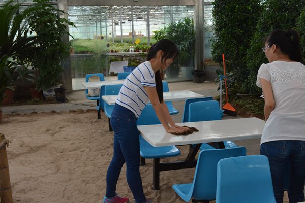 7点50分,志愿者在前门集合一同乘坐大巴前往目的地亭子庄。8点半,准时开始志愿活动。志愿者们在北农科技园工作人员的带领下,有的清理田间的杂草,有的对花园餐厅的餐桌进行了清理,有的整理麦穗徒手设计,每个志愿者们都积极地投入到自身的志愿服务工作中。11点半,志愿者们在北农科技园的温室餐厅就餐,就餐结束后也为此次志愿服务工作画上句点。