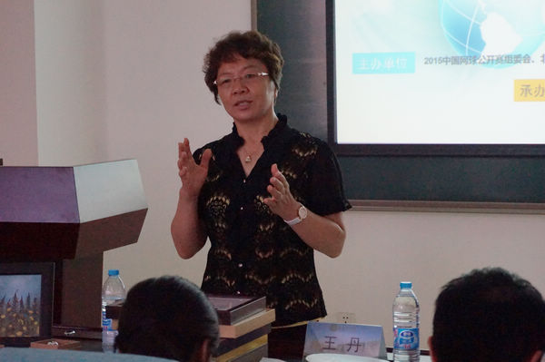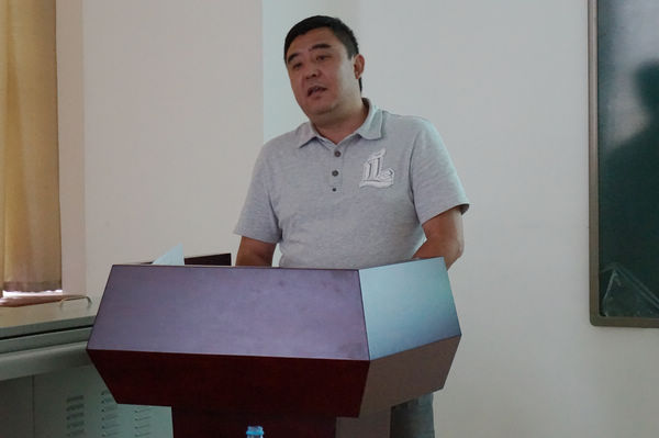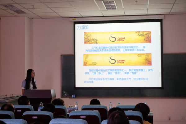 北京中国网球公开赛推广办公室主任王颖彦上台讲话,他首先代表组委会对北京农学院对这次比赛的高度重视表示感谢,同时也对参赛选手们的设计作品提出了建议,指出了不足。