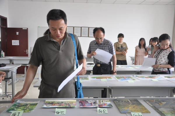 6月10日下午,“魅力园林”答辩活动结束后,学院学生会主席曹融邀请五位答辩指导老师前来园林楼402室为同学们上交的“手绘北农”的作品进行打分。打分过程中,几位老师细细地欣赏着同学们的画作,在每幅作品前都驻足许久,纷纷感叹有天分且肯努力的同学大有人在。付军老师仔细地从头到尾品味每幅作品三遍之多,才开始为所有的作品认真打分。最后,老师们肯定了同学们的才艺、功底,并鼓励北农学子继续加油。