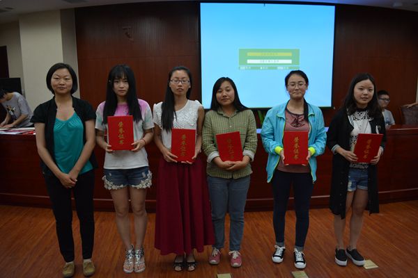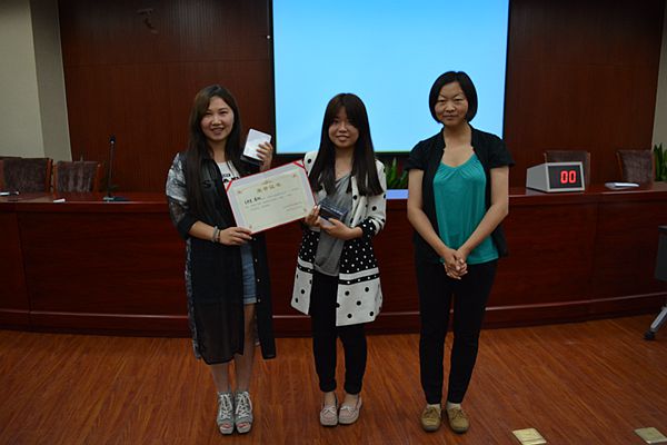 之后,主持人揭晓了最终比赛结果:潘羽洁,李艳捷两位同学获一等奖;孙润坤,崔潆心,汪傲琪,白璐遥四位同学获得了二等奖;邹晓鑫,刘鹏丽,李秋燕,罗韵,夏蔚玲,刘欣怡等六位同学获得了三等奖;薛喜娟,杜玥霞两位同学获得了优秀奖。比赛结果不仅显示出了选手们的实力,也使选手和观众们在比赛过程中获得了欢声笑语。