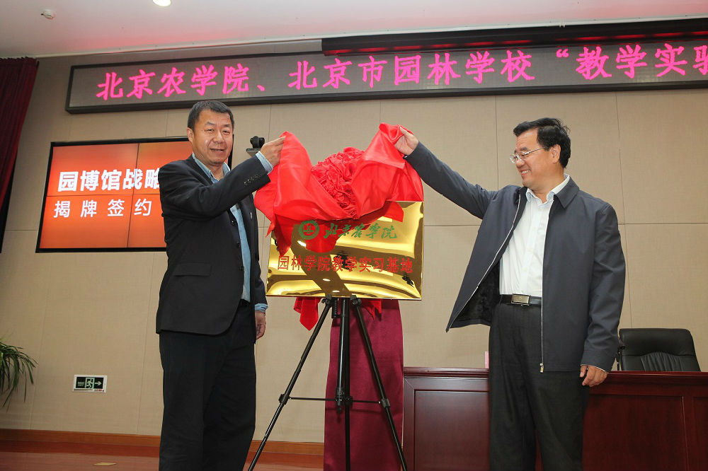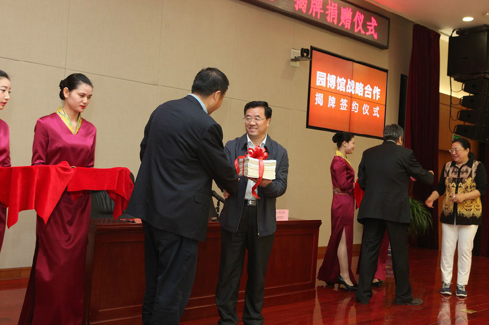 会议伊始,由著名书法家向中国园林博物馆捐赠墨宝《园博馆赋》庆祝园博馆开馆两周年。接着,北京农学院与中国园林博物馆签署战略合作协议,进行实习教学实验基地揭牌仪式。揭牌仪式后,北京农学院并向园博馆捐赠了园林方面的书籍。