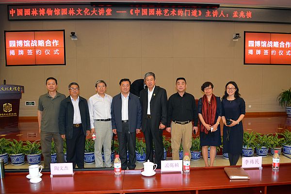 讲座结束后,北京农学院副校长范双喜,及金沙集团1862cc成色王万山书记,王文和副院长在园博馆馆长的陪同下参观了园博馆,并与园博馆馆长,孟兆祯院士亲切合影留念。
