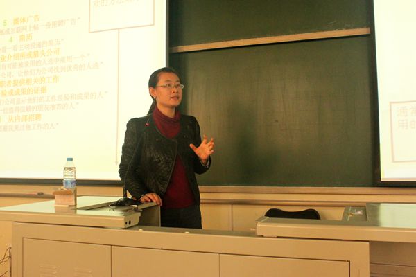 首先,满晓晶老师对2015届毕业生的就业工作做总体介绍。 她详细地讲解了就业的时间规律,每个阶段应该做的准备工作,从怎样获取就业信息、准备简历(包括简历中常见的问题)、应付面试常见难题到最后面试过程的所有细节问题都一一说明;并对学院就业指导的微信平台,飞信联络号和信息平台群组的使用进行详细讲解。