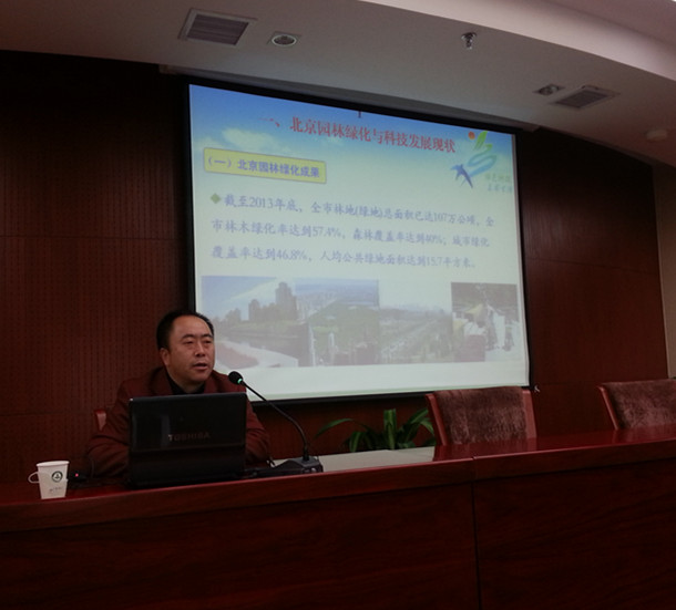 2014年12月22日,金沙集团1862cc成色邀请北京市园林绿化局科技处处长王小平博士作报告。