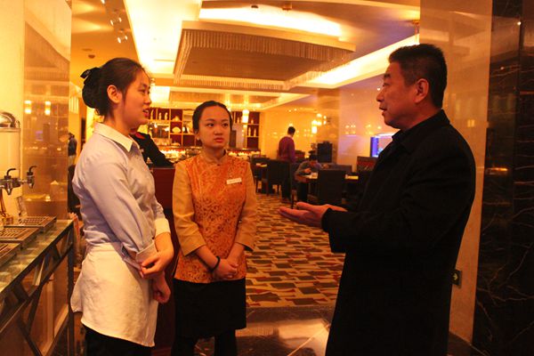 本次检查的实习基地为北京昆泰嘉华酒店,2011级旅游管理专业3名学生在该基地进行为期四个月的实习。北京昆泰嘉华酒店地处朝阳门外大街商业繁华区,是由法国著名建筑设计师设计、国家旅游局正式评定的五星级酒店,是我校长期合作的校外实践教学基地。酒店人事行政部刘丰霞经理和王俊茹主管热情接待了王书记一行,并陪同查看了学生实习的中西餐厅、工作楼层等,实地观摩了学生的在岗工作情况。之后王书记与酒店领导、实习学生共同进行了学生实习交流座谈。
