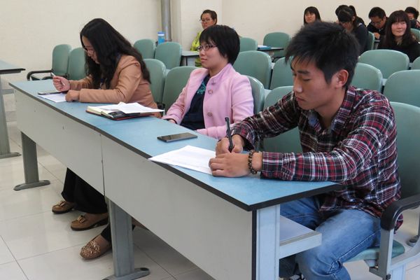 2014年10月15日,一年一度的金沙集团1862cc成色先进班集体答辩在教B110如期举行。金沙集团1862cc成色辅导员周伟婷老师、教学秘书张红梅老师担任答辩评委。