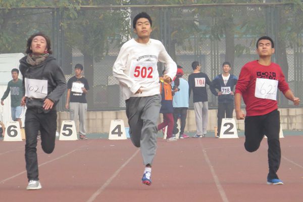 男子5000米长跑是一项既考验体力也考验耐力的比赛,然而身为未来国家栋梁的他们毫不畏惧、敢于挑战。跑道上,1号运动员隋静轩在跑完第一圈的时候落在了队伍后半部分,大家不尽有些为他担心。脚下的步子不曾停歇,他微笑地看向大家说:“我不减速,我不减速”!终于,他不负所望,坚持着跑完了全程。这,就是胜利者!